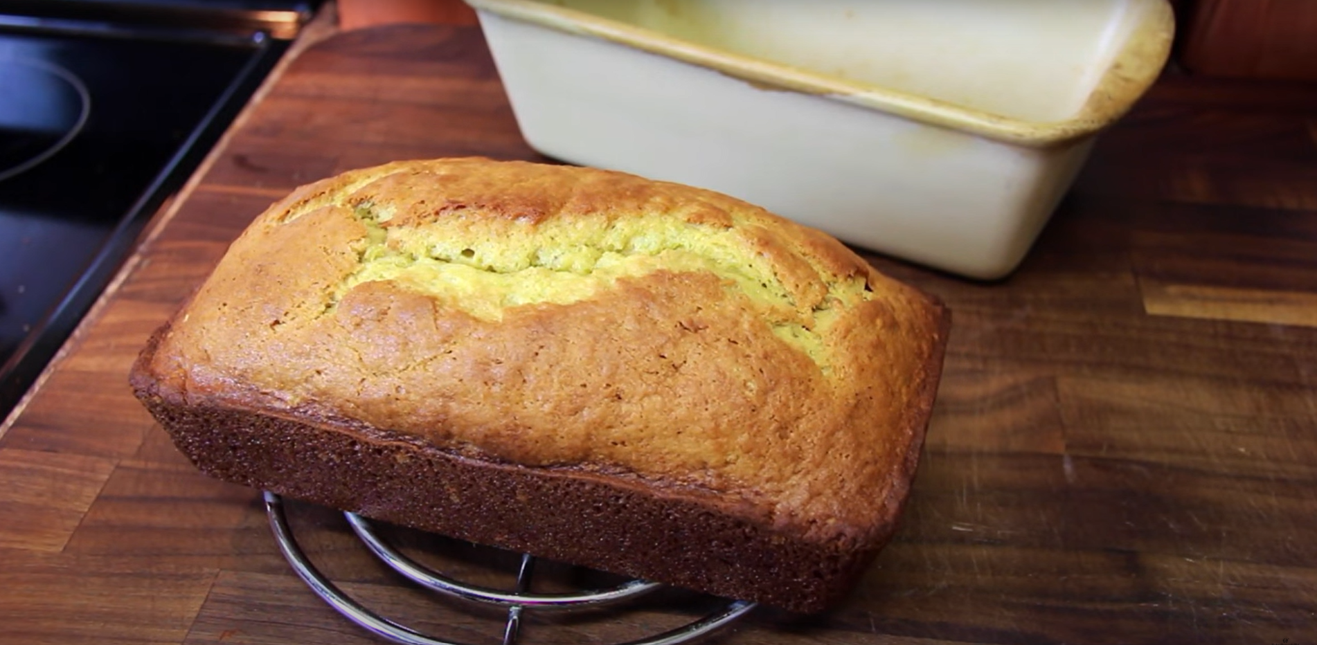 Bake at 350 degrees for 50-60 minutes. Let cool slightly on a cooling rack before slicing.